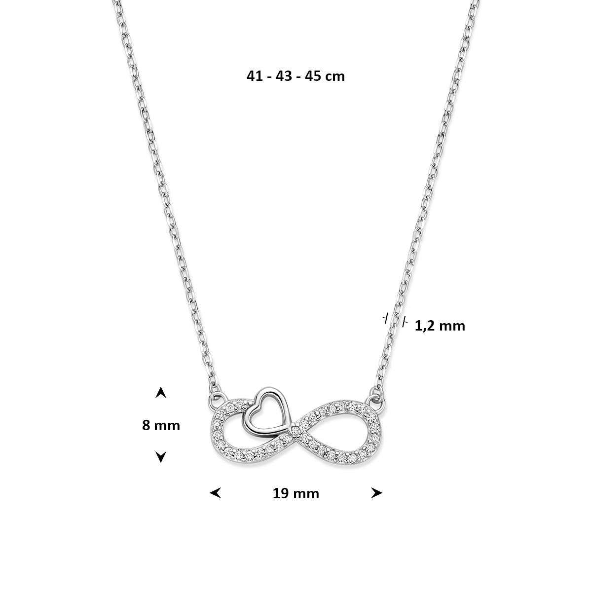collier zirkonia infinity en hartje 41 43 45 cm